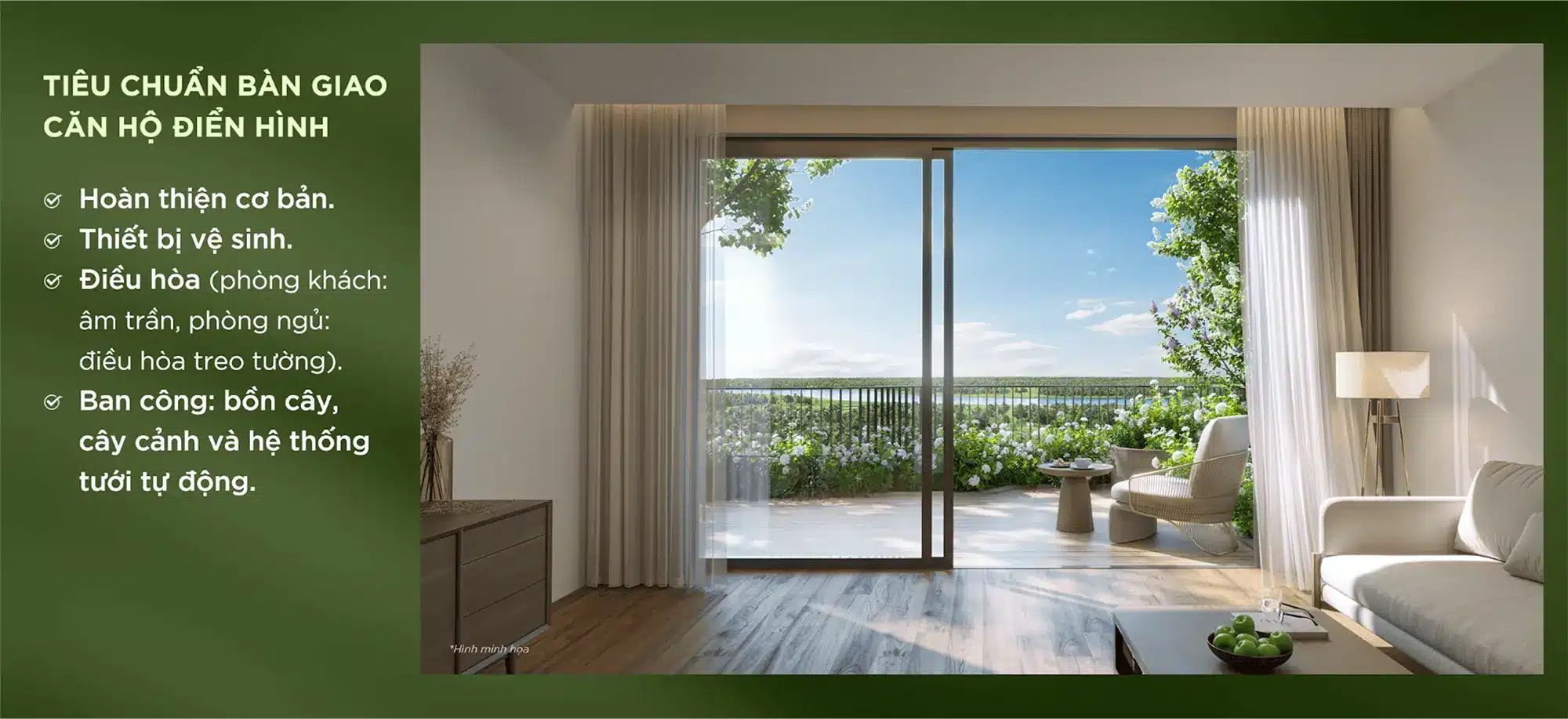 Penthouse đẳng cấp với ban công vườn xanh mướt, tầm nhìn panorama ôm trọn 50ha rừng retreat. Không gian sống xa hoa với cửa kính từ sàn đến trần.